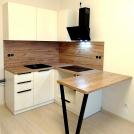 Столешница с интегрированной мойкой изготовлена из кварцевого камня.
